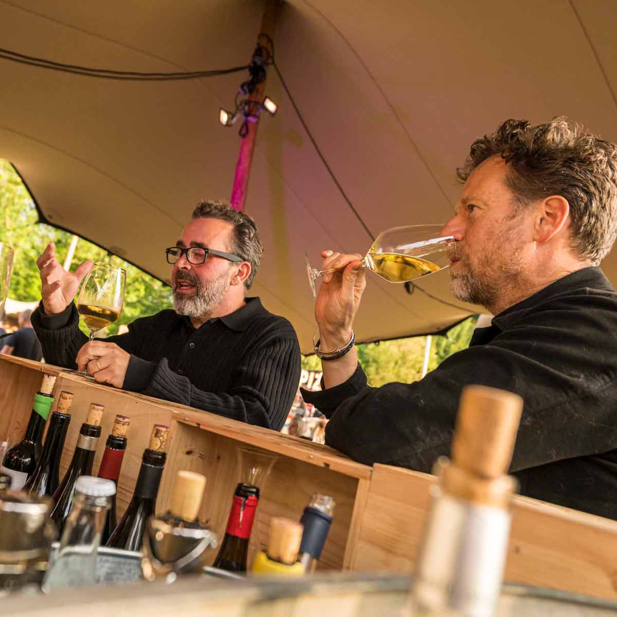 Vanaf 19:00 uur gaat het los bij het hoofdpodium en verandert Bacchus van “nog één glas” in dansen, sjansen.